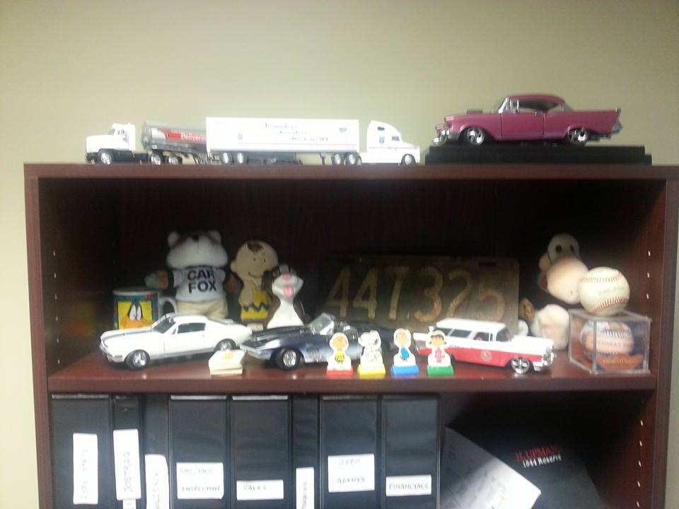 The Opus doll, well that’s a no-brainer. Bloom County was always a favorite. The Charlie Brown and Looney Tunes mug, well that’s my childhood in a nutshell. The baseball, my son gave me the game ball after he lined his first double over an 11 year old’s head in Little League. The model cars never failed to make me smile as I am a shameless car lover. The model trucks were a makeshift shrine to my father. The license plate was from 1929 and was once on my grandfather’s first car.